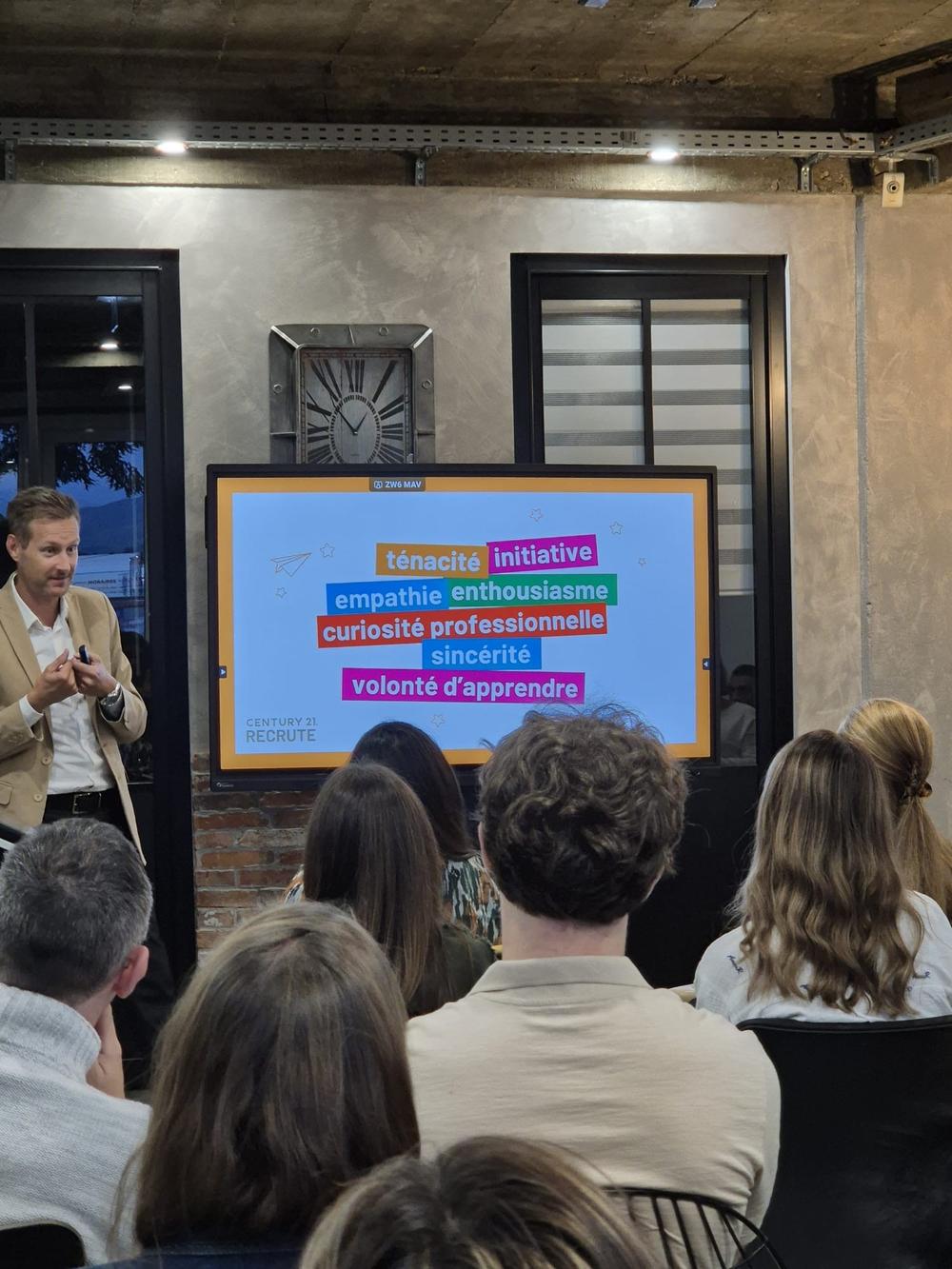 L’un des messages clés de la soirée a été de rappeler qu’aucune expérience préalable n’est nécessaire pour rejoindre notre agence. Century 21 propose en effet un parcours de formation complet, à la fois en interne et via les programmes Century 21 France. Chaque nouvel arrivant bénéficie ainsi d’un accompagnement sur mesure pour acquérir les compétences techniques et commerciales indispensables, tout en développant son savoir-faire relationnel.